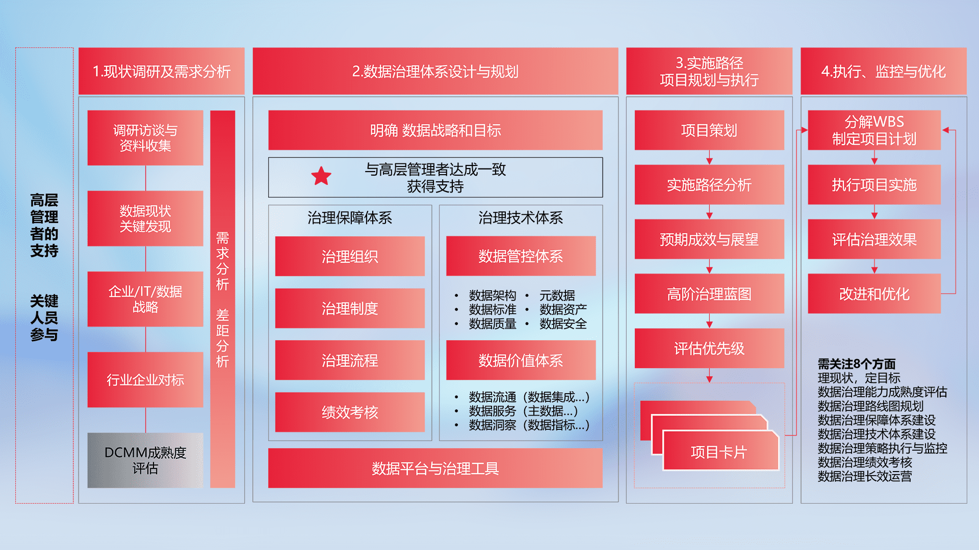 制定并执行统一的数据标准,,规范数据定义和格式,,,,消除冗余和不一致性,,,实现跨部门和跨系统的数据一致性,,,,为企业提供标准化的数据基础。。。